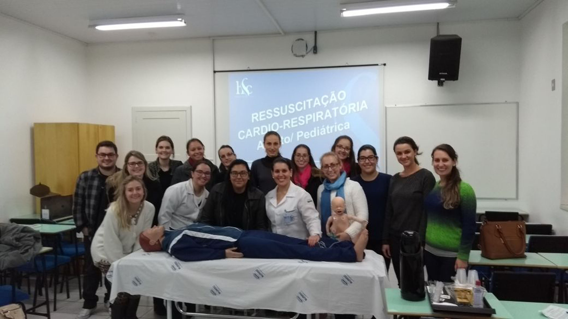 ência Multiprofissional em Saúde com ênfase em Intensivismo, Urgência e Emergência do Hospital Santa Cruz participaram de um treinamento sobre reanimação cardiorrespiratória juntamente com as enfermeiras Denise Cunha, Fernanda Salvi, Gilciane Bolzan e Sabine de Azevedo, que representaram o Serviço de Educação Permanente da Instituição. A atividade faz parte da Disciplina de Tópicos Especiais.