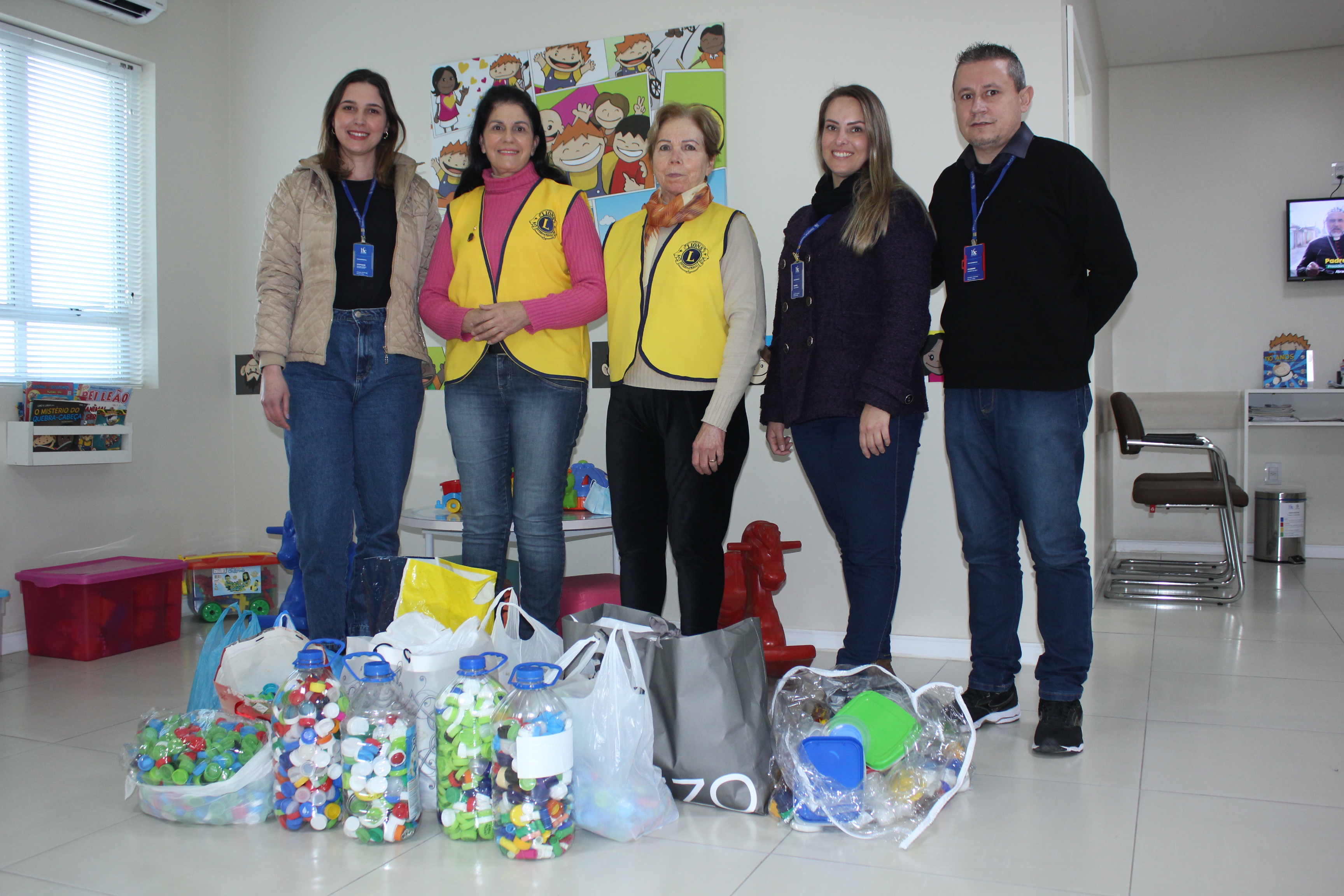 Sol doou tampas plásticas para o Projeto Bem na Tampa do Hospital Santa Cruz. A entrega foi realizada pela presidente do Clube, Ana Raffler, e pela integrante Eromilda Armani Martineli. O material foi recebido pela assistente técnica da área ambiental da casa de saúde, Stephanie Schafer, e pelos assistentes de projetos e captação de recursos da Instituição, Tamara Riediger e Evandro Leal Melo. Parte das tampas plásticas foram recolhidas pelo Lions Clube no dia 14 de setembro, por meio de uma campanha realizada pelo grupo.