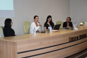 A mesa redonda Do cuidado à inovação na cultura de segurança iniciou com a palestra Desafios da Segurança do Paciente, com a enfermeira Cassiana Prates. O enfermeiro residente Leandro de Medeiros falou em seguida sobre Simulação realística e segurança: aprendizados no Canadá. A moderadora da mesa foi a enfermeira Caroline Bertelli.