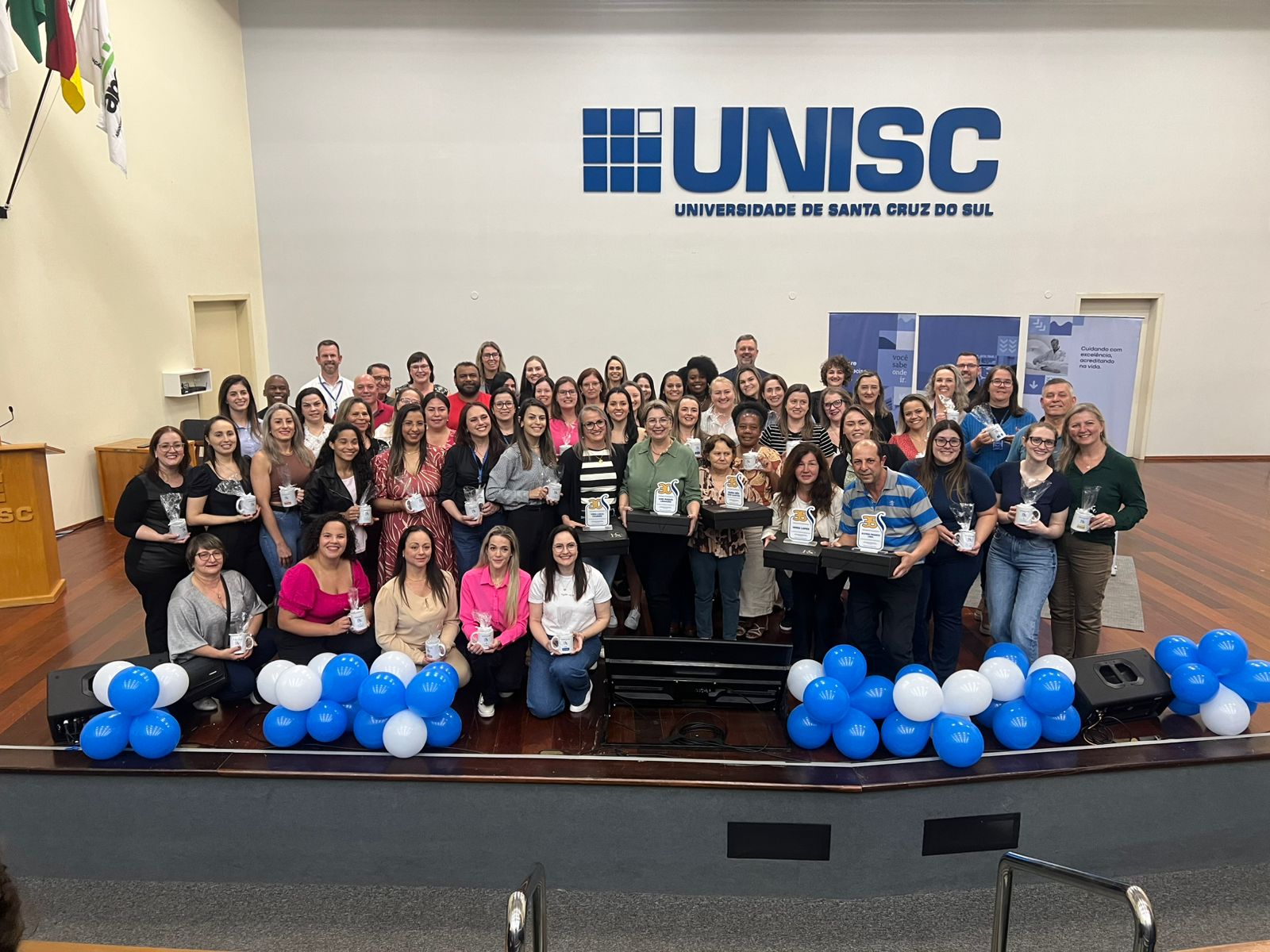 O Hospital Santa Cruz realizou, no dia 9 de outubro, a homenagem aos 96 funcionários que completam quinquênio de tempo de serviço na Instituição no ano de 2025. A solenidade ocorreu no anfiteatro do bloco 18, no campus sede da Universidade de Santa Cruz do Sul (Unisc), e encerrou com um coquetel oferecido aos participantes.
