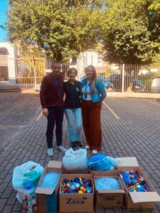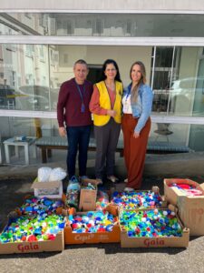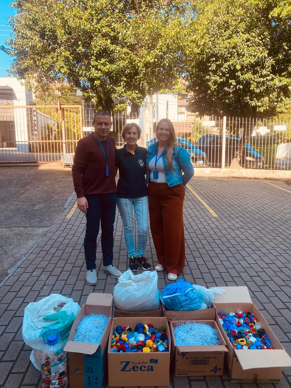O Hospital Santa Cruz recebeu na quinta-feira, dia 9, doações de tampas plásticas e lacres metálicos arrecadados pelo Lions Clube Santa Cruz do Sul – Aliança e pelo Lions Clube Santa Cruz do Sul – Raio de Sol. As entregas foram feitas, respectivamente, pelas representantes Lizete Haeser e Ana Raffler para os assistentes de projetos e captação de recursos do Hospital, Tamara Riediger e Evandro Leal Melo.