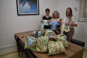 A Casa da Amizade de Santa Cruz do Sul realizou na sexta-feira, dia 14, a doação de mais 10 kits de enxoval infantis para a área materno-infantil do Hospital Santa Cruz. A entrega foi feita pela integrante Jacira Assmann e pela presidente Maria Faleiro para a assistente de projetos e captação de recursos do Hospital, Tamara Riediger.
