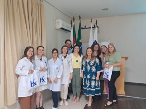 Instituição, com o tema A atuação psicossocial no Ambulatório de Gestação de Alto Risco. O evento foi conduzido pela enfermeira Greice de Souza Leal, coordenadora de enfermagem da Urgência e Emergência SUS, do Ambulatório de Convênios e da Unidade Ambulatorial Acadêmica.
