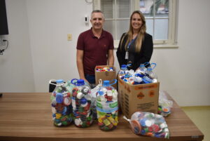 O Hospital Santa Cruz recebeu na sexta-feira, dia 24, a doação pessoal de tampas plásticas arrecadadas pela família de Paulo Berté, de Santa Cruz do Sul, para o projeto Bem na Tampa. A entrega foi feita para a assistente de projetos e captação de recursos do Hospital, Tamara Riediger.