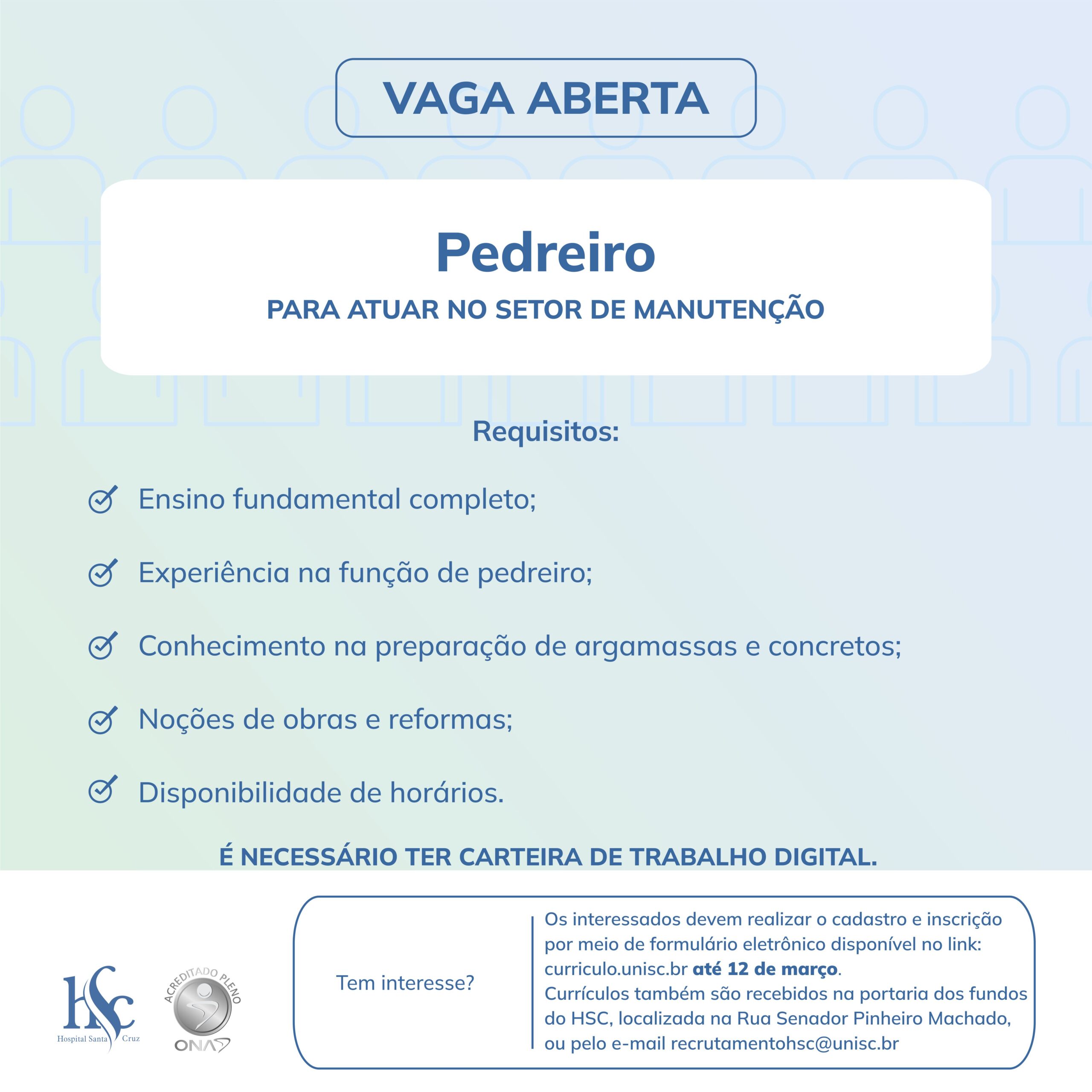 Não encontrou a vaga que procurava? Não se preocupe! Você pode se cadastrar em nosso Banco de Talentos acessando o link acima, e seu currículo ficará disponível para futuras consultas. É aqui que vamos buscar candidatos quando tivermos novas oportunidades!